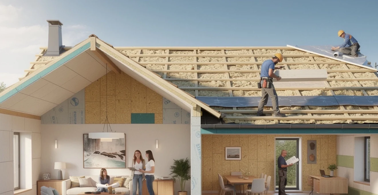 Deux grandes stratégies se dessinent : isoler par-dessus la charpente (sarking) pour préserver la totalité de la hauteur intérieure, ou optimiser l’isolation entre chevrons avec des matériaux à haute performance ou à forte densité, éventuellement complétés par des systèmes minces réfléchissants. Dans le cas de combles perdus, la problématique de hauteur se pose moins : on privilégiera alors des isolants soufflés à forte épaisseur, concentrant l’isolation là où elle est la plus efficace, au niveau du plancher.